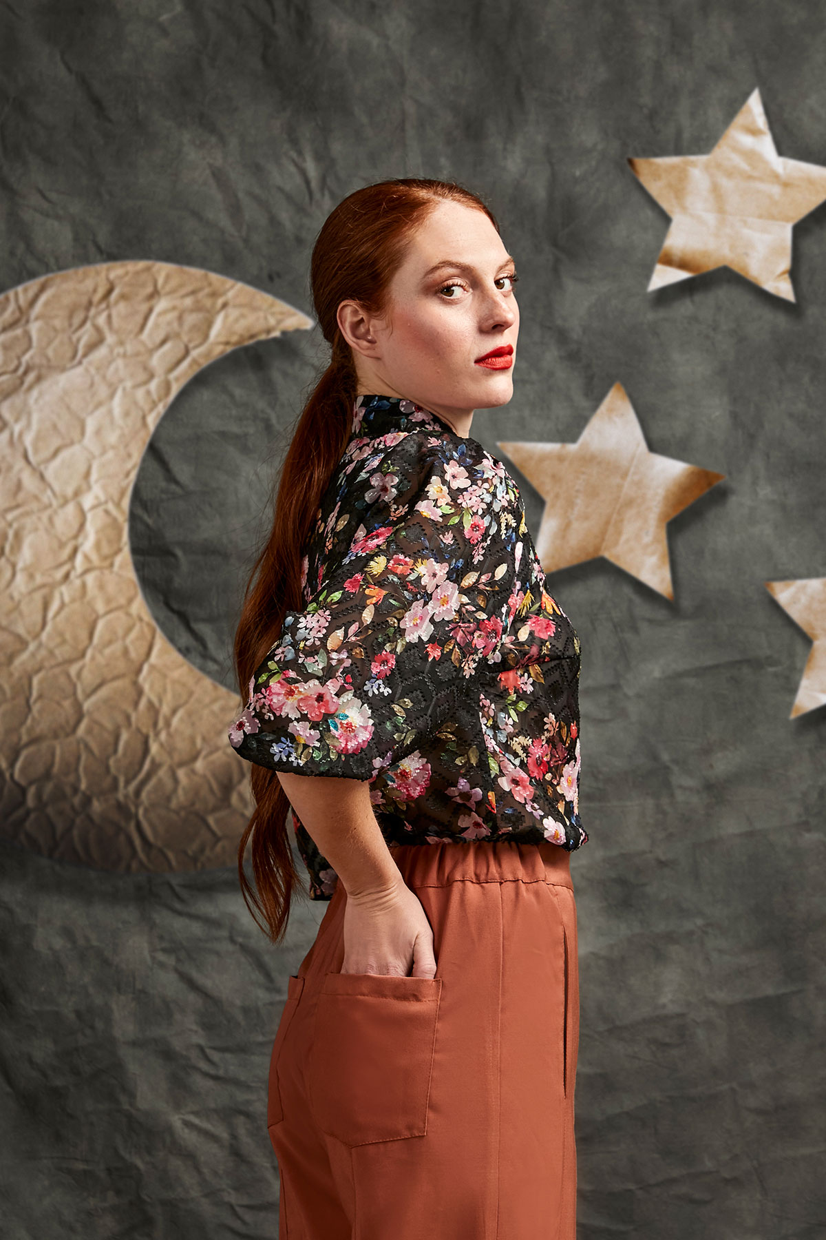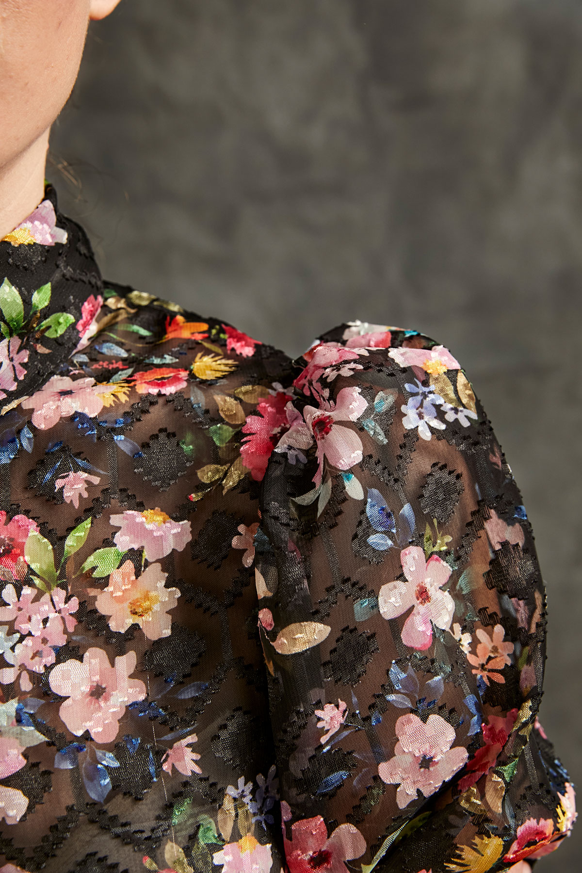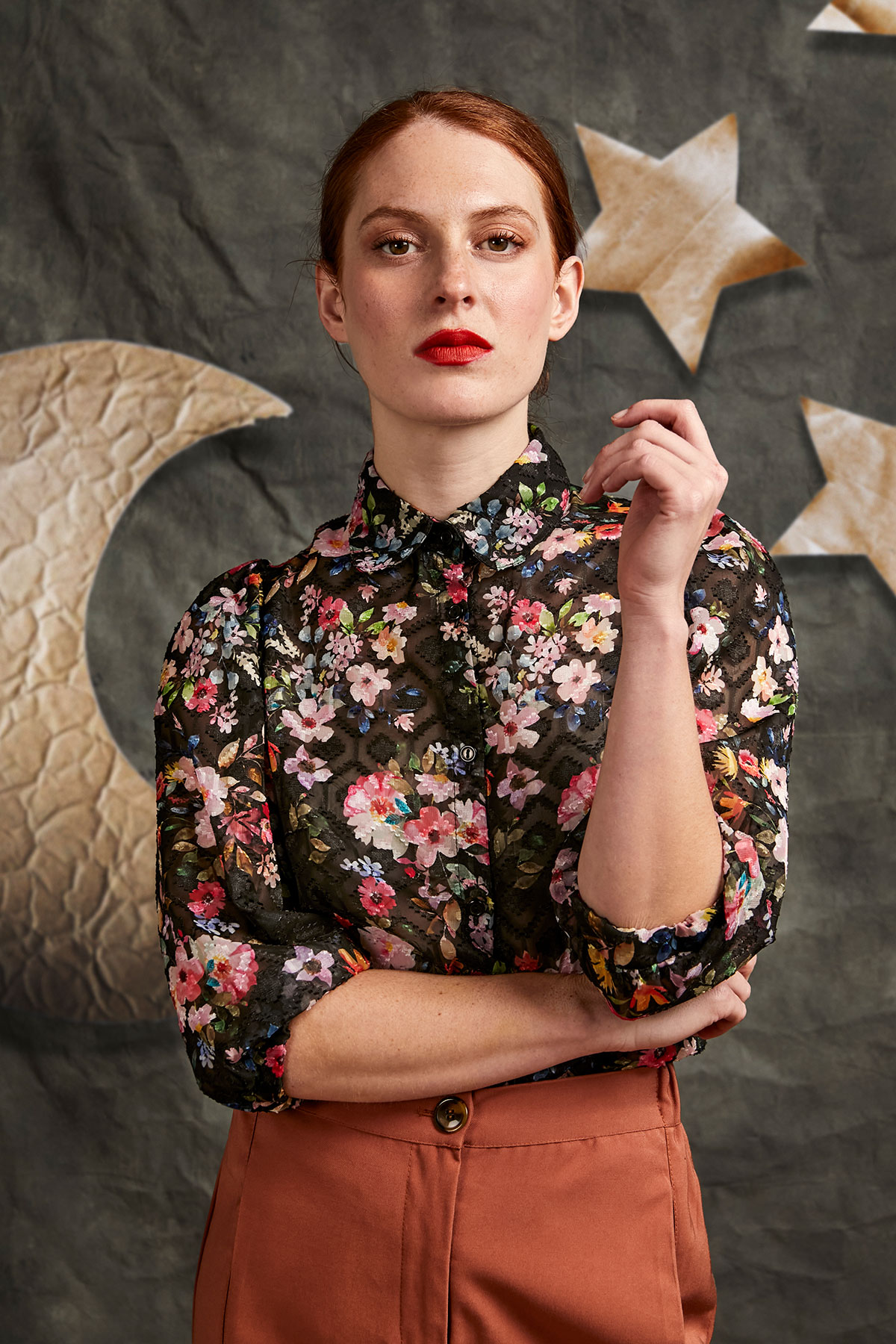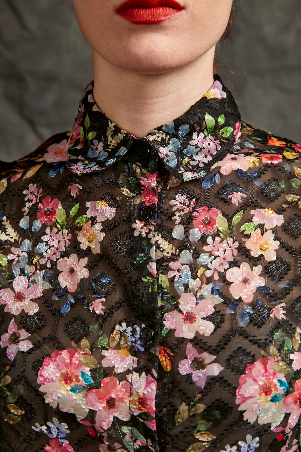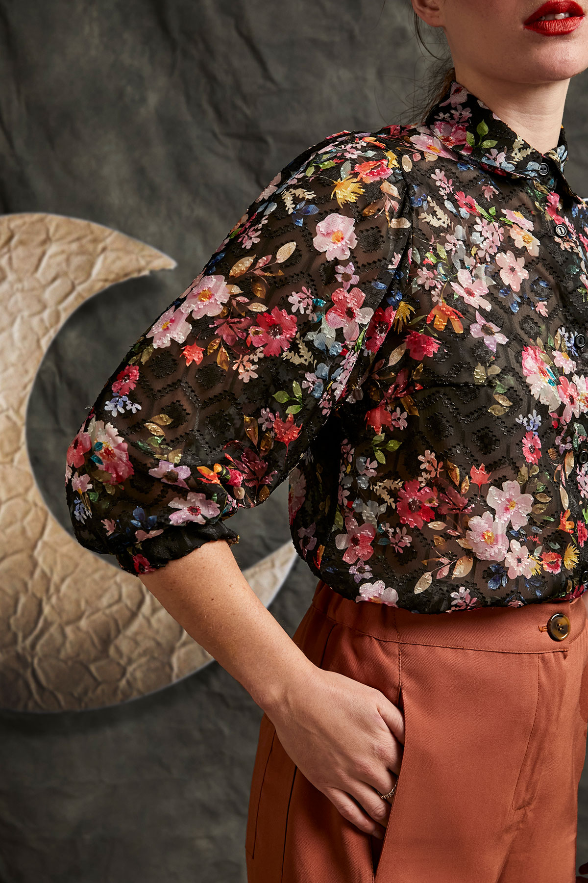 Flower printed and semi transparent 100% poliester shirt