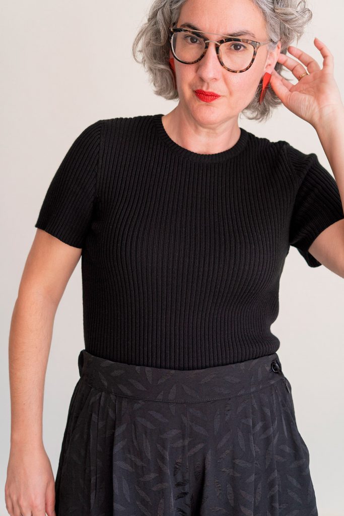 Short sleeve black fit top in 100% egyptian cotton